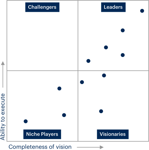 A Gartner é uma empresa norte-americana de consultoria que analisa o posicionamento de uma determinada empresa, no seio de um mercado específico, naquilo que denomina o Magic Quadrant (“quadrante mágico”). Este modelo é composto por quatro quadrantes: os players de nicho, os visionários, os desafiadores e os líderes.